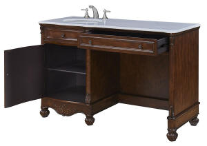This traditional style 52 inch wide Make up Sink Vanity ships as shown with the white marble Stone Top and includes the Wall Mirror if purchased as a set.